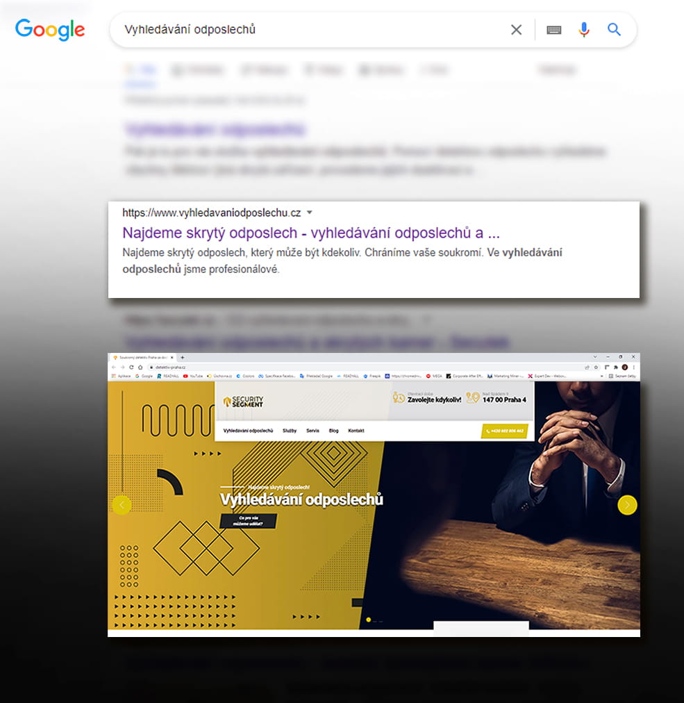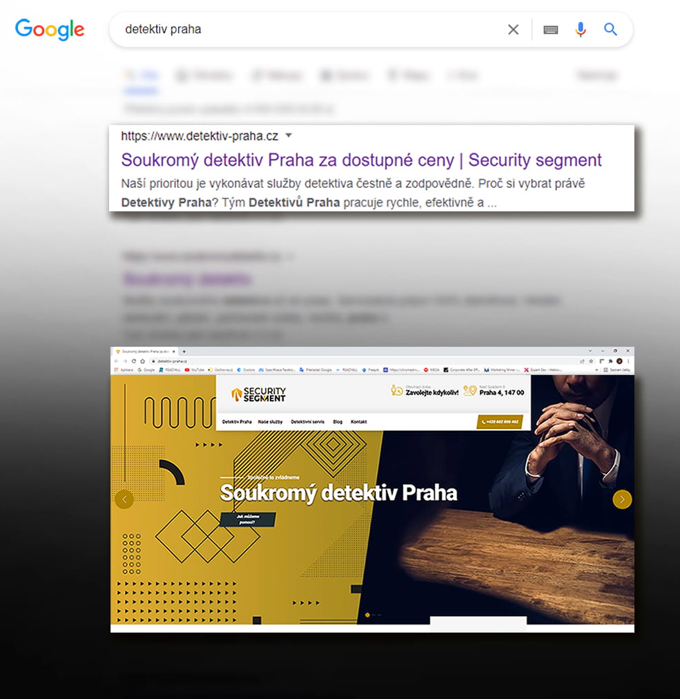 Detektiv Praha se zaměřuje na detektivní služby v Praze a díky naší práci se tato mikrostránka dostala na první příčku ve vyhledávání na googlu.