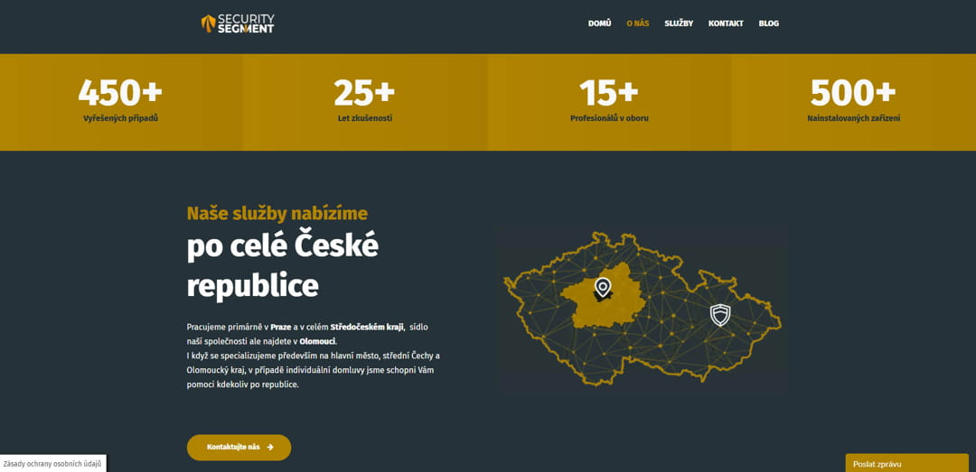 Všudypřítomný je také kontaktní formulář, díky kterému může zákazník kontaktovat společnost okamžitě a sjednat si tak službu v prakticky reálném čase.